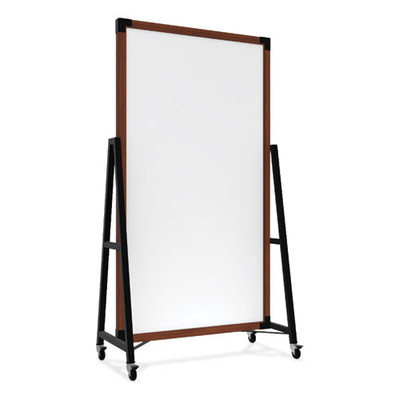 Prest Mobile Magnetic Whiteboard, 40.5" X 73.75", White Surface, Caramel Oak Finished Wood Frame