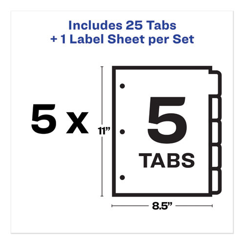 | Package Includes: | Includes five sets of 5-tab dividers |