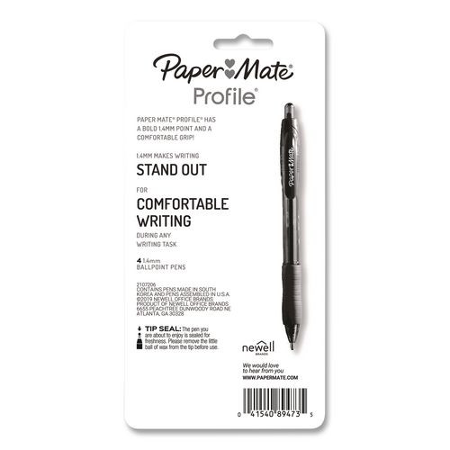 Profile Ballpoint Pen, Retractable, Bold 1.4 mm, Assorted Ink and Barrel Colors, 4/Pack