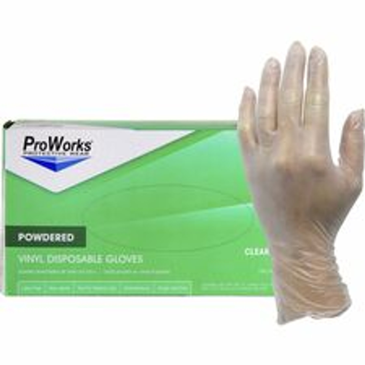 ProWorks Vinyl Powdered Industrial Gloves - 3 mil Thickness x 9" Glove Length - Medium Size - Vinyl - Clear - Powdered, Non-sterile - For Industrial, General Purpose, Construction, Food Processing, Food Service, Hospitality - 100/Box - 10 / Carton