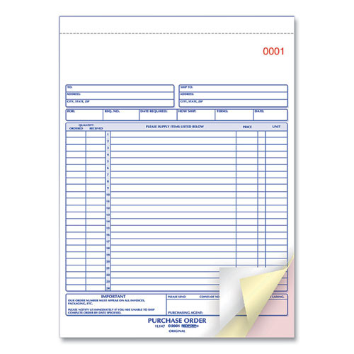 Purchase Order Book, Three-part Carbonless, 8.5 X 11, 1/page, 50 Forms