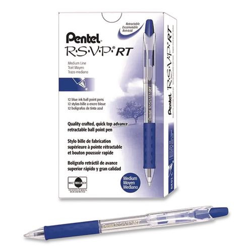 R.s.v.p. Rt Ballpoint Pen, Retractable, Medium 1 Mm, Blue Ink, Clear Barrel, Dozen