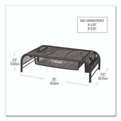Raise Metal Mesh Monitor Stand With Drawer, 20" X 11.5" X 5.6", Black, Supports 25 Lbs