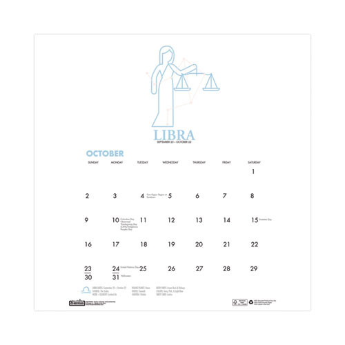 Recycled Academic Zodiac Wall Calendar, 14 X 11, Multicolor Sheets,12-month (aug To July): 2023