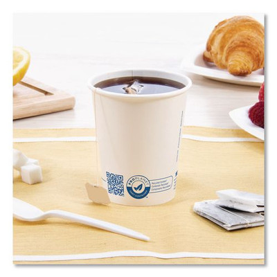 Recycled Content PCF Paper Hot Cups, 10 oz, ProPlanet Seal, White/Blue, 480/Carton