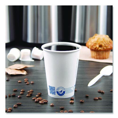 Recycled Content PCF Paper Hot Cups, ProPlanet Seal, 12 oz, White, 50/Pack
