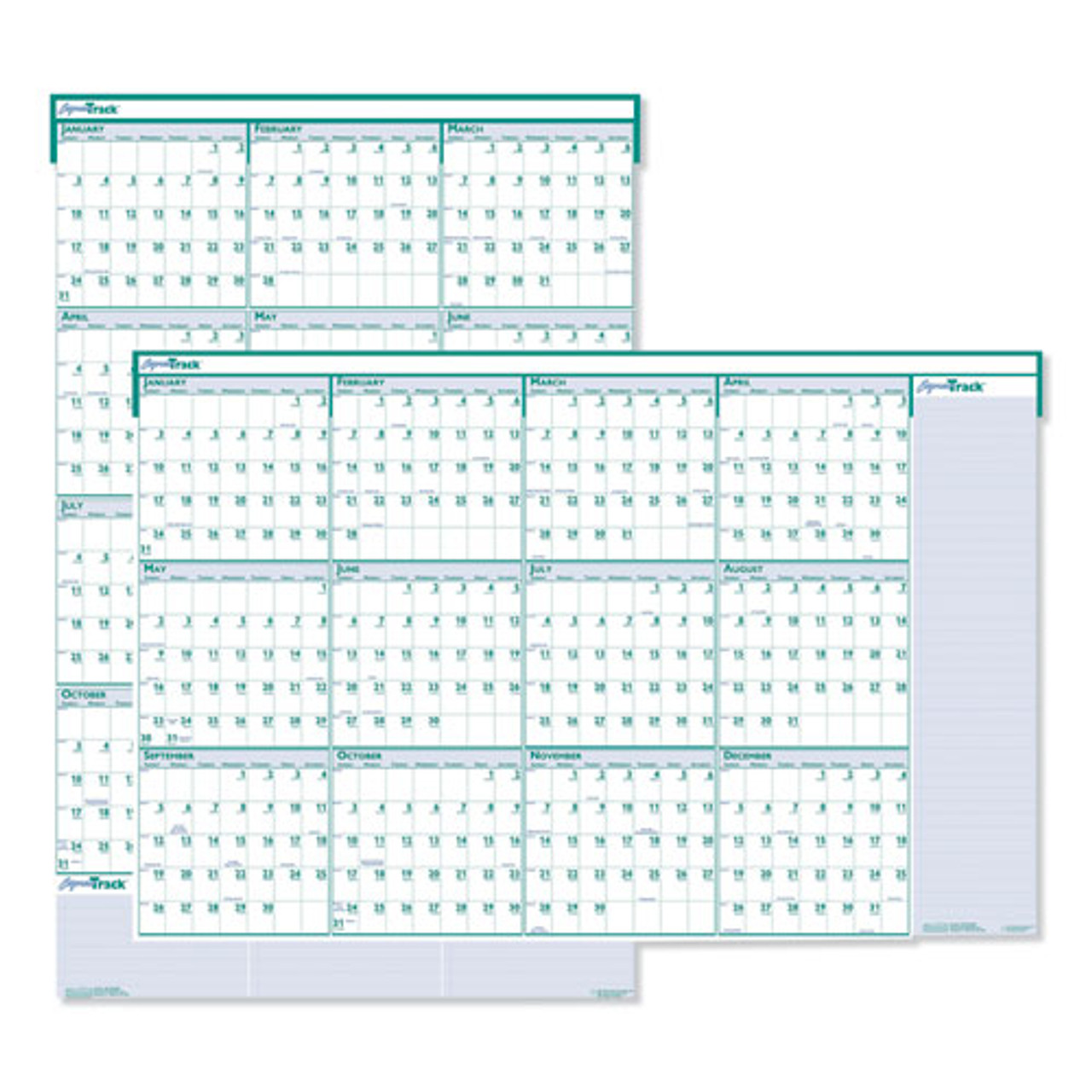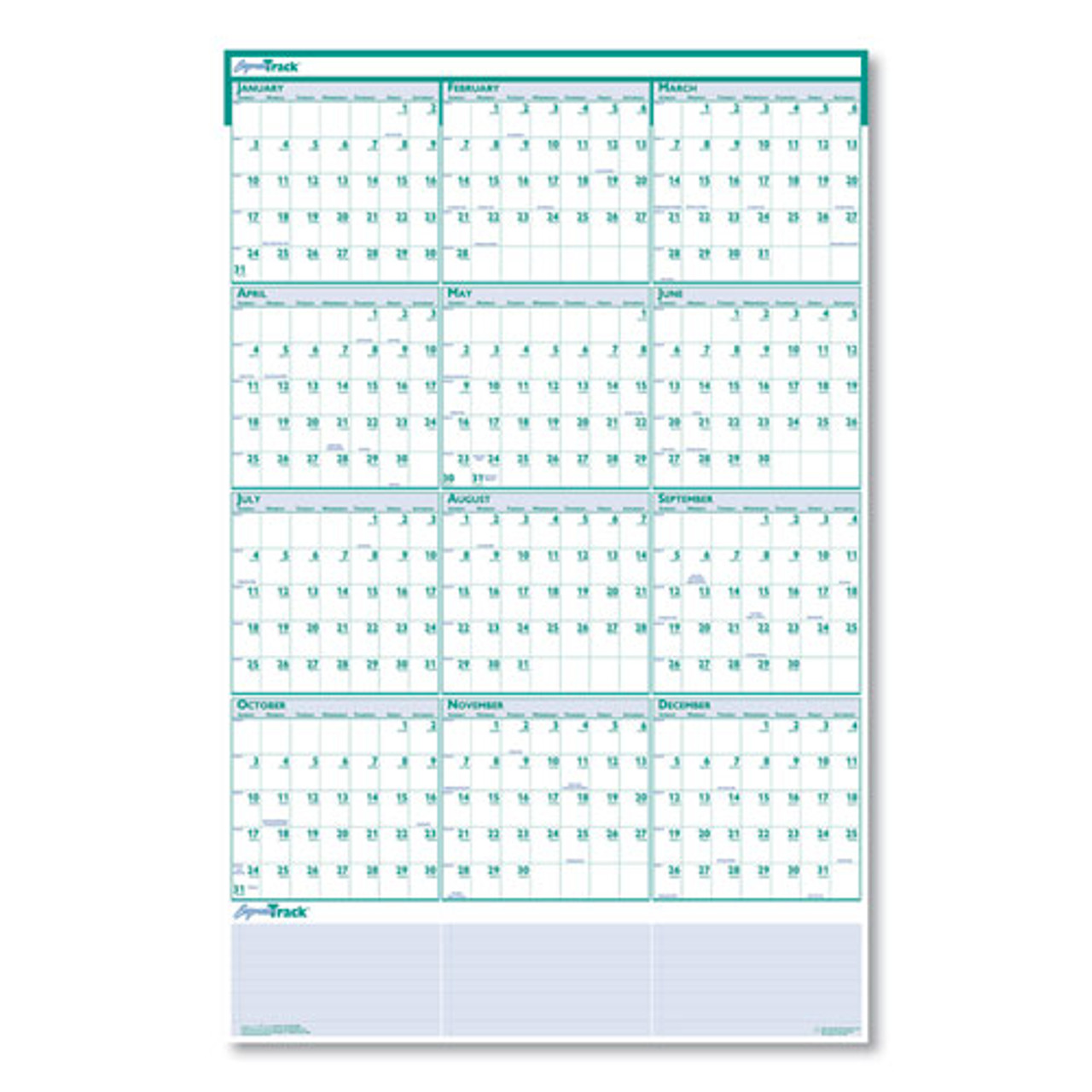 Express Track Recycled Reversible/erasable Yearly Wall Calendar, 24 X 37, White/teal Sheets, 12-month (jan To Dec): 2022