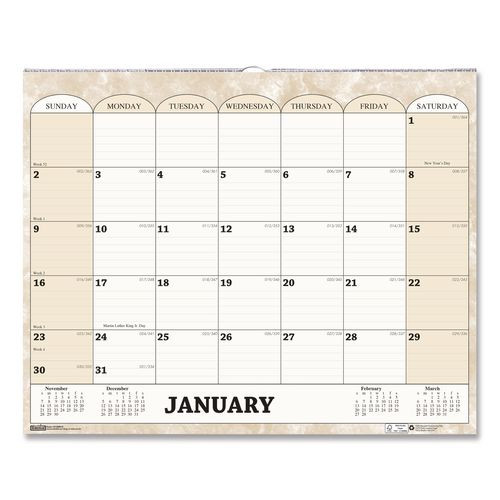 Recycled Monthly Horizontal Wall Calendar, Marble Stone Artwork, 14.88 X 12, White/sand Sheets, 12-month (jan To Dec): 2022