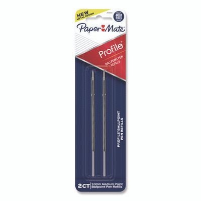 Refill For Paper Mate Profile Ballpoint Pens, Medium 1 Mm Conical Tip, Black Ink, 2/pack