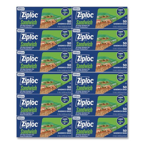 Resealable Sandwich Bags, 6.5" x 5.88", Clear, 50 Bags/Box, 12 Boxes/Carton