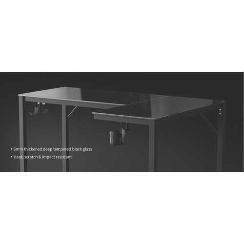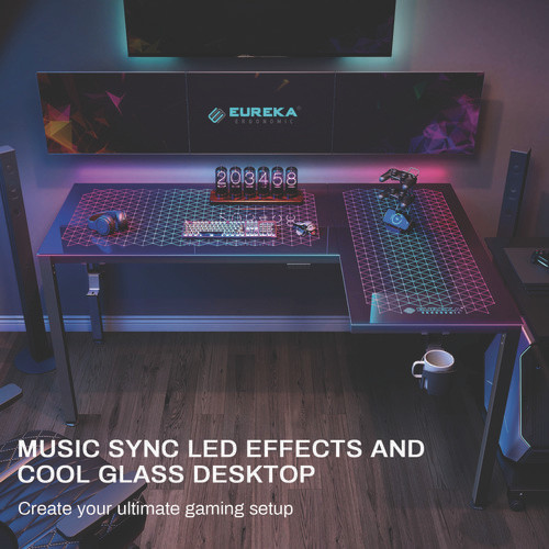 Rgb Led Lights Glass Gaming Desk, 60" X 40.25" X 30", Black