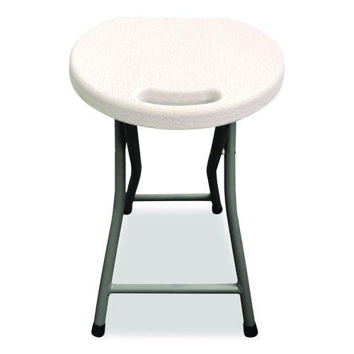 Rough N Ready Folding Stool, Backless, Supports Up To 300 Lb, 18" Seat Height, White Seat, Charcoal Base, 4/carton