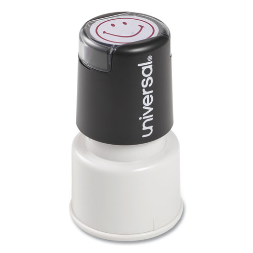 Round Message Stamp, Smiley Face, Pre-inked/re-inkable, Red