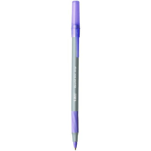 Round Stic Grip Xtra Comfort Ballpoint Pen, Easy-glide, Stick, Medium 1.2 Mm, Purple Ink, Gray/purple Barrel, Dozen