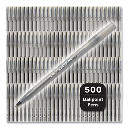Round Stic Xtra Life Ballpoint Pen, Stick, Medium 1 Mm, Black Ink, Translucent Black Barrel, 500/pack
