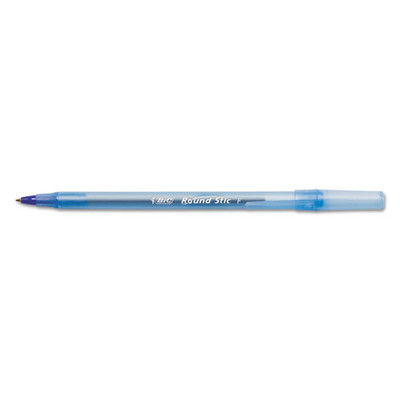 Round Stic Xtra Life Ballpoint Pen, Stick, Medium 1 Mm, Blue Ink, Translucent Blue Barrel, Dozen
