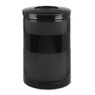 Add To Quote Rubbermaid® Commercial Classics Perforated Open Top Receptacle, Round, Steel, 25 Gal, Black Perforated steel design with a clean, modern appearance. Lift-off, cable secured top allows easy access to inner liner for maintenance. Dual retainer bands secure poly bags neatly inside receptacle... Add To Quote