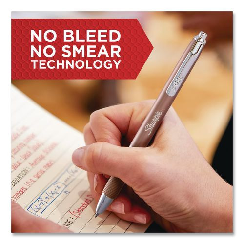 S-gel Premium Metal Barrel Gel Pen, Retractable, Medium 0.7 Mm, Black Ink, Champagne Barrel, 2/pack
