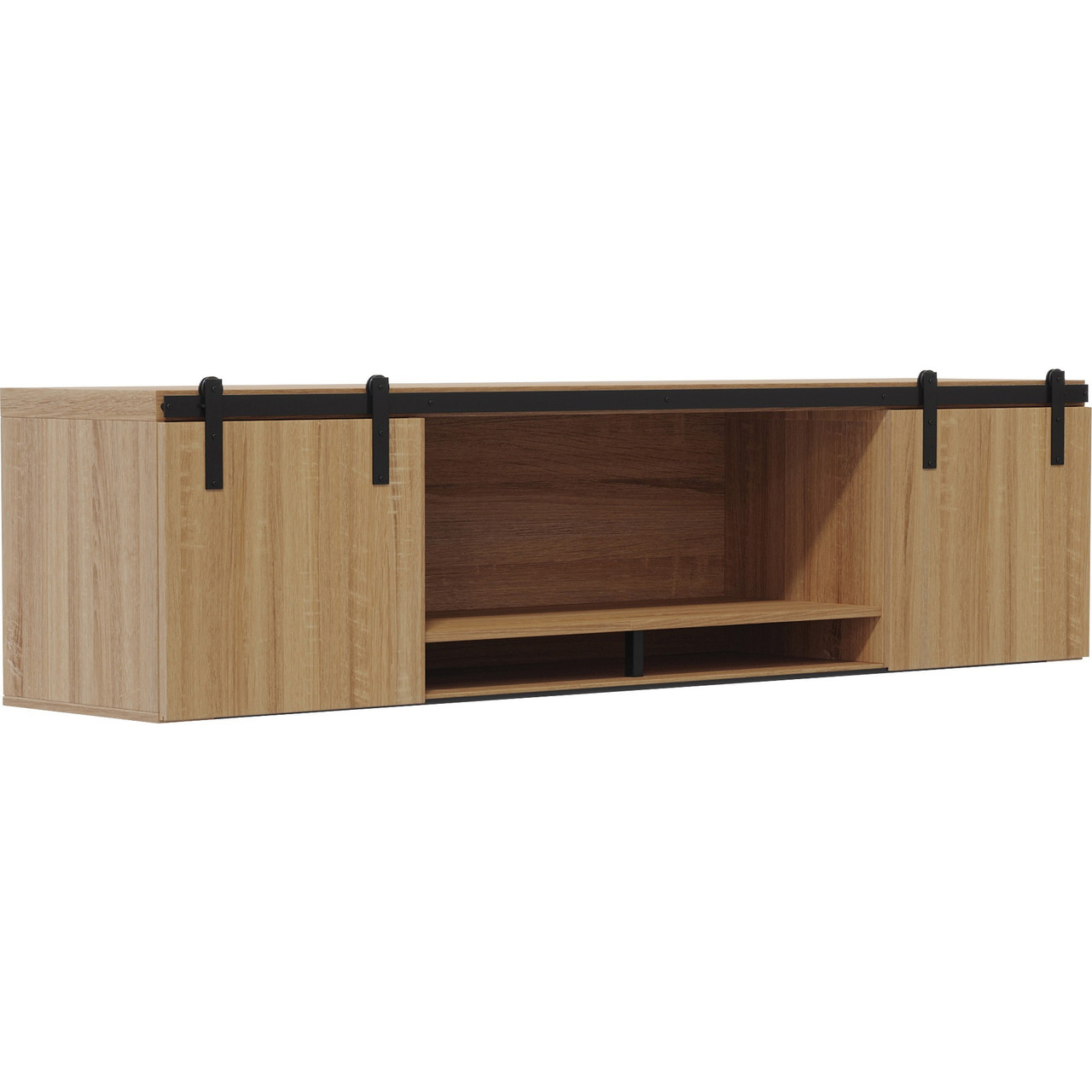 Safco 72" Mirella Wall-Mounted Hutch with Wood Doors - 18" Height x 72" Width x 15" Depth - 2 Door(s) - Material: Particleboard, Laminate - Finish: Sand Dune, Laminate, Black Powder Coat - 1 Each