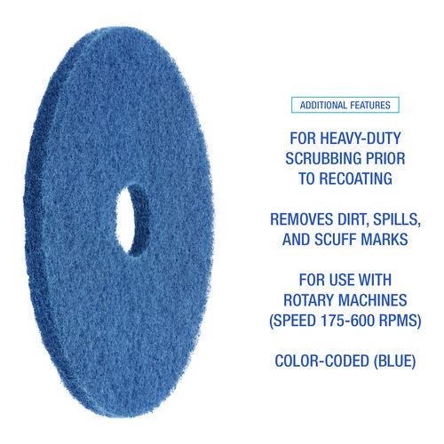 Scrubbing Floor Pads, 17" Diameter, Blue, 5/carton