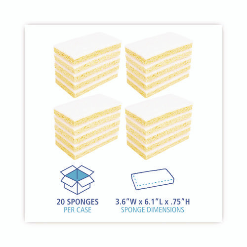 Scrubbing Sponge, Light Duty, 3.6 X 6.1, 0.7" Thick, Yellow/white, Individually Wrapped, 20/carton