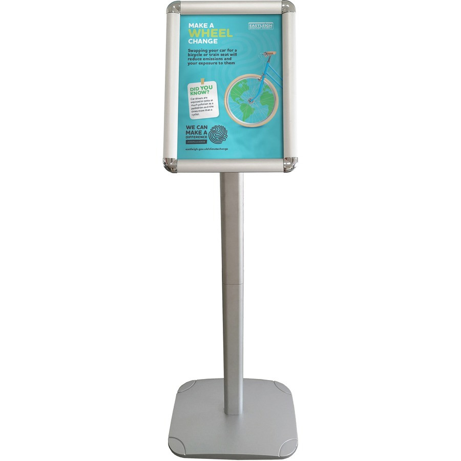 An ideal eye-level display, this Decorative Menuboard is a high-quality solution for displaying a list of choices for your guests. It is ideal for reception areas, entrances and anywhere else you need to display menus. With the ability to adjust the frame to either portrait or landscape, the Menuboard looks good in any situation. It is satin-finished and features a decorative base for a professional look. Snap-frame poster holder also has rounded corners to help with safety. Quick assembly takes approximately 5 minutes.