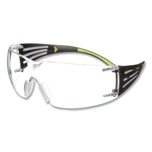Securefit Protective Eyewear, 400 Series, Green Plastic Frame, Clear Polycarbonate Lens