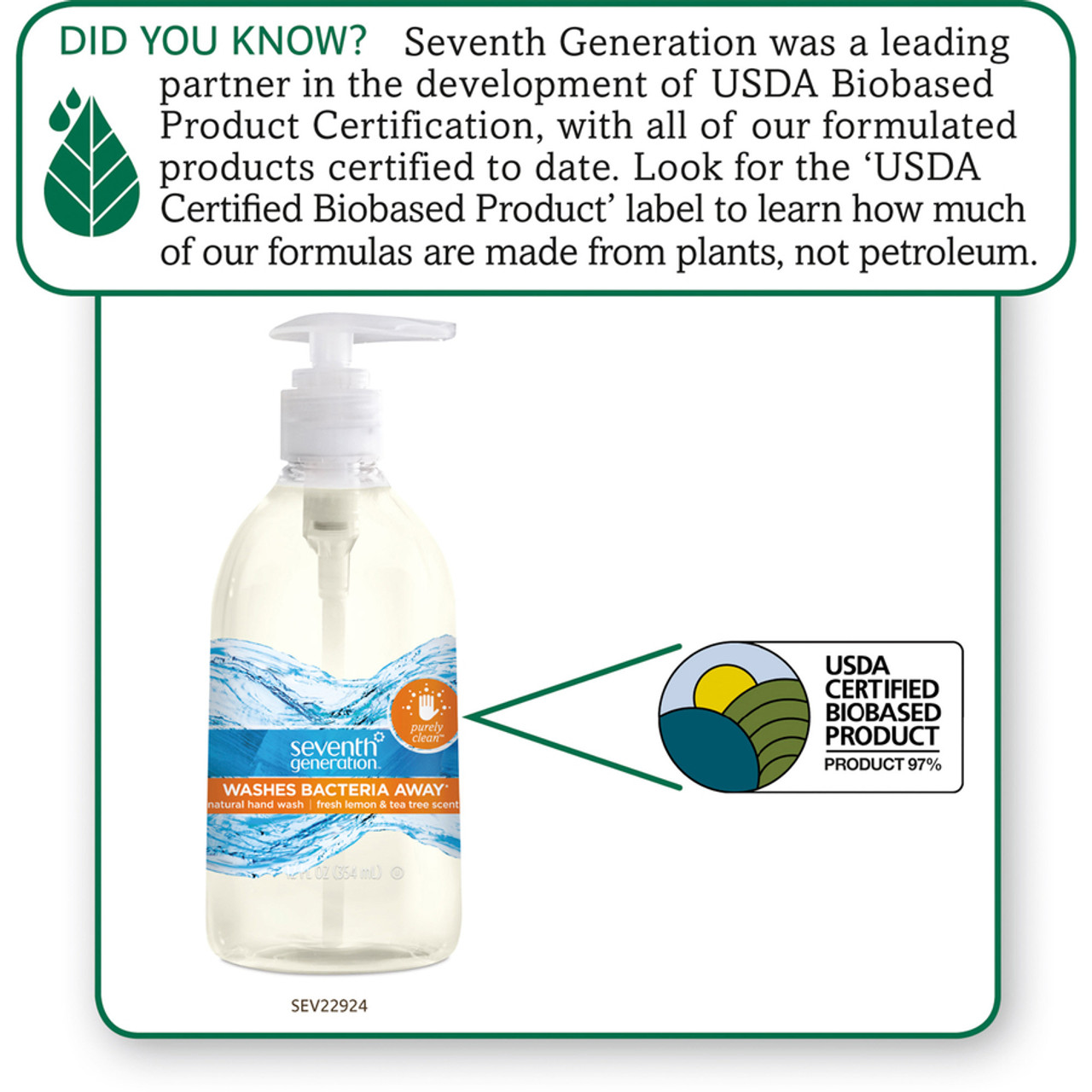 Seventh Generation Purely Clean Hand Wash - Fresh Lemon & Tea Tree Scent - 12 fl oz - Pump Bottle Dispenser - Kill Germs, Bacteria Remover - Hand - Antibacterial - Clear - Dye-free, Phthalate-free, Bio-based, Rich Lather, Gluten-free - 8 / Carton