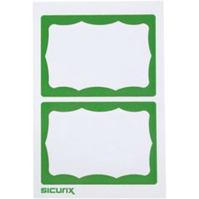 SICURIX Green Border Adhesive Badges 2 Per Sheet 100 Pack White - 3 1/2" Width x 2 1/4" Length - Inkjet, Laser - White - Green Border - Self-adhesive, Removable, Easy Peel - 2 / Sheet - 100 / Box