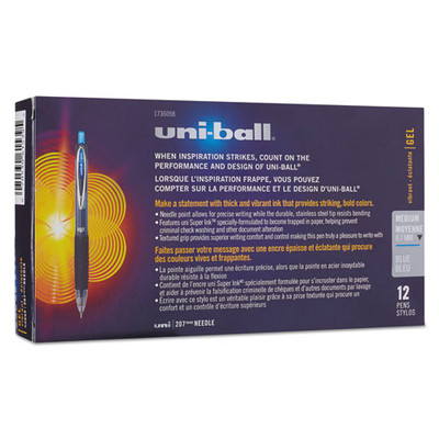 Signo 207 Gel Pen, Retractable, Bold 1 Mm, Blue Ink, Black/blue Barrel, Dozen