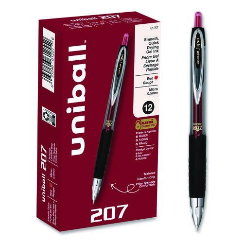 Signo 207 Gel Pen, Retractable, Micro 0.5 Mm, Red Ink, Smoke/black/red Barrel, Dozen