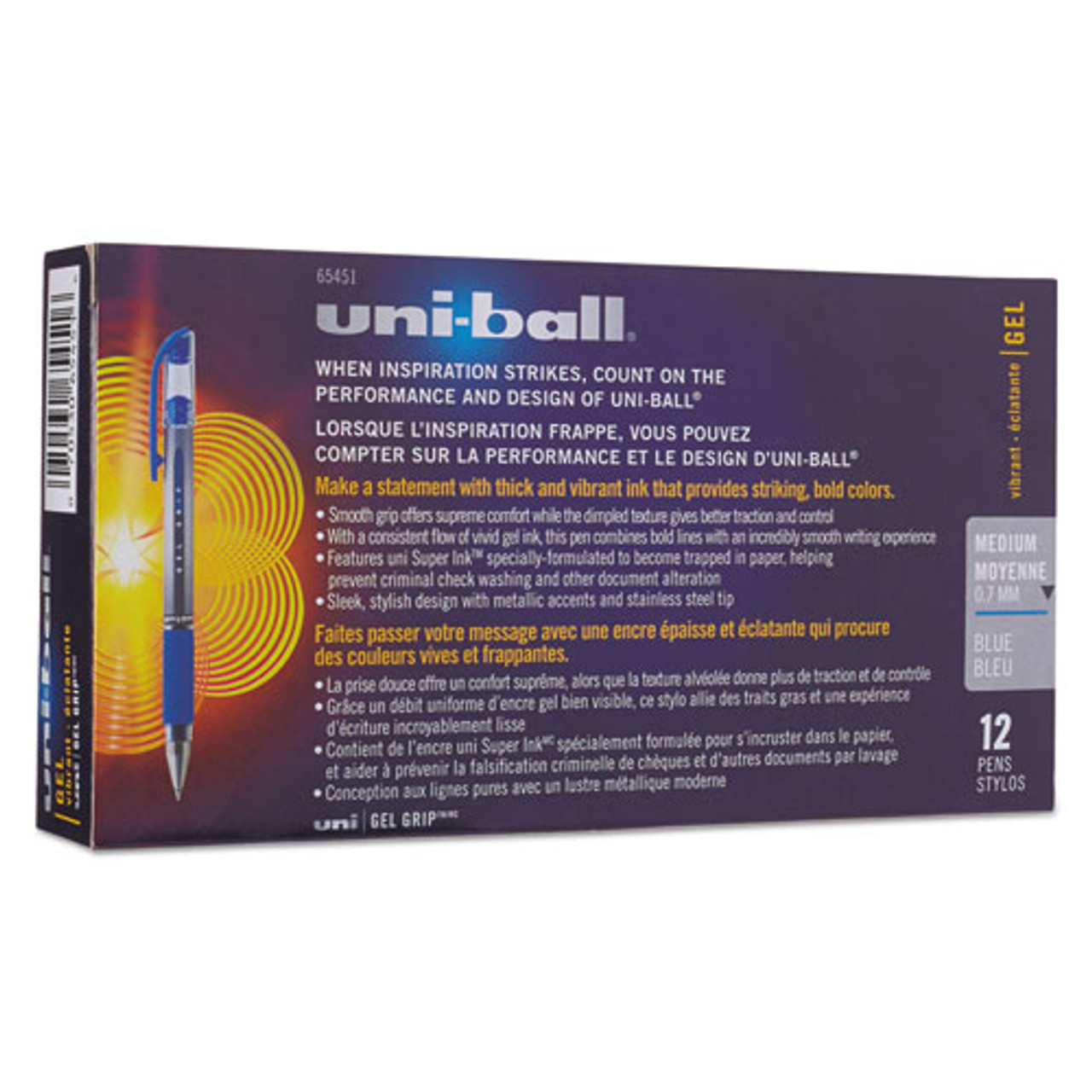 Signo Grip Gel Pen, Stick, Medium 0.7 Mm, Blue Ink, Silver/blue Barrel, Dozen