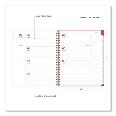 Sincerely Jules Helenora Academic Year Weekly/Monthly Planner, 11 x 8.5, Pink Floral Cover, 12-Month: July 2025 to June 2026