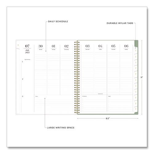 Sincerely Jules Kyla Green Academic Year Weekly/Monthly Planner, 11 x 8.5, Green/White Cover, 12-Month: July 2025 - June 2026