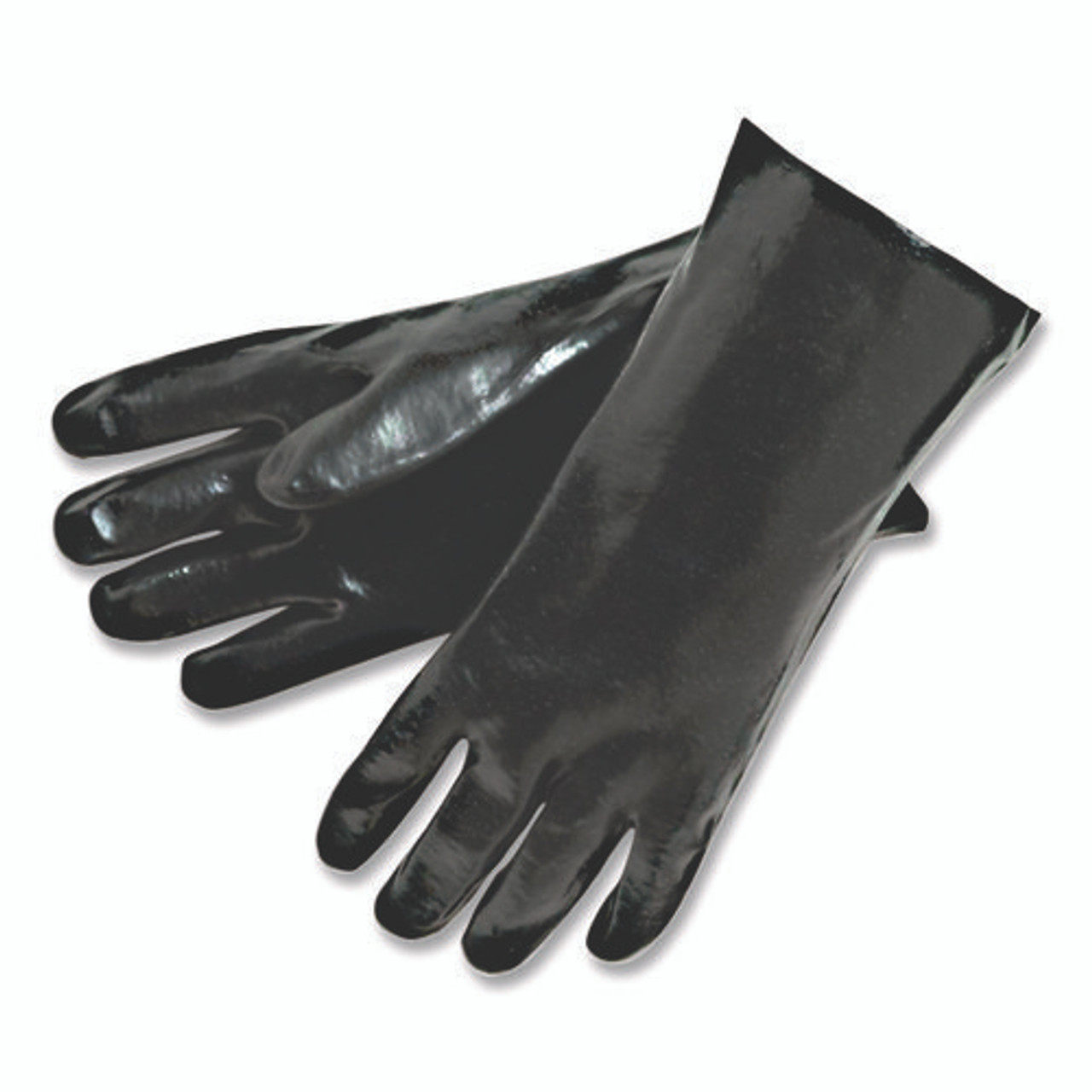 Single Dipped Pvc Gloves, Smooth, Interlock Lined, 18" Long, Large, Black, 12 Pair