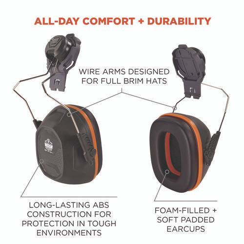 Skullerz 8880 Nrr 26db Hard Hat Mounted Earmuffs, Full Brim, Gray