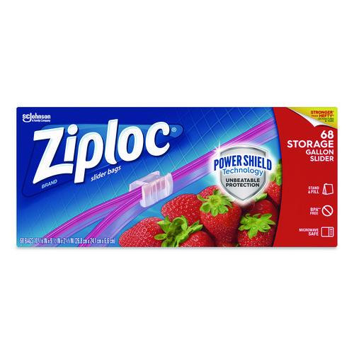 Get unbeatable protection with Power Shield technology featuring an easy close slider and more durable film. Ziploc Brand Slider bags are strong enough to use again. Keep your food fresh with these slider bags. Each bag features a slider closure and an expandable bottom that opens into a flat base, helping the bag stay upright so it's easy to fill. Commercial/Consumer Use: Consumer Use; Food-Handling Use Scenario: General Food Storage; Bag Size Type: Gallon; Capacity (Volume): 1 gal.