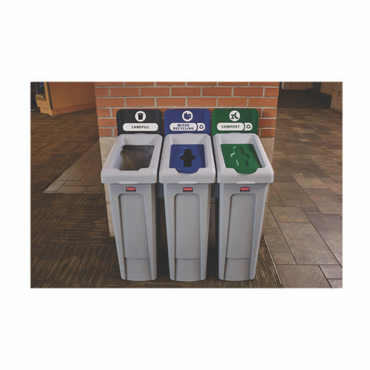 Slim Jim Recycling Station Kit, 1-stream Landfill, 23 Gal, Plastic, Gray/black