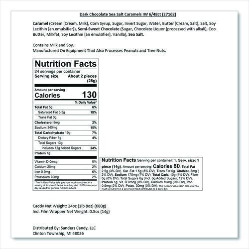 Small Batch Wonders Snack Size Dark Chocolate Sea Salt Caramels, 0.5 oz Individually Wrapped, 48/Box