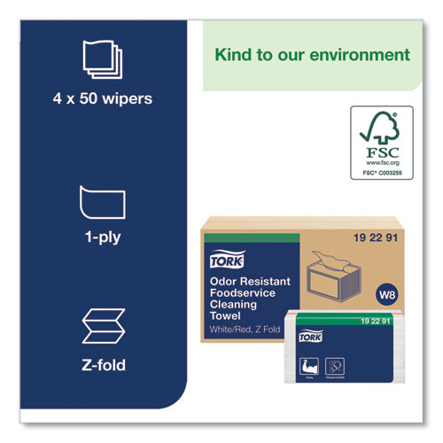 Small Pack Foodservice Cloth, 1-ply, 11.75 X 14.75, Unscented, White With Red Stripe, 50/poly Pack, 4 Packs/carton