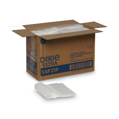 SmartStock Plastic Cutlery Refill, Series-B, Mediumweight Fork, White, 40/Pack, 24 Packs/Carton