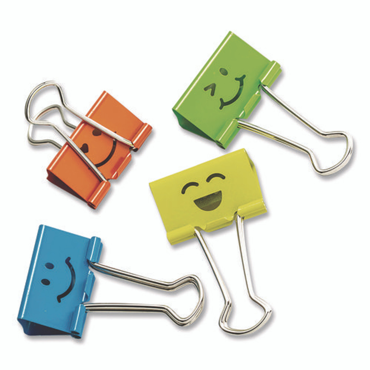 Smiling Face Binder Clips, Medium, Assorted Colors, 36/pack