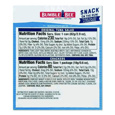 Snack on the Run Tuna Salad with Crackers, 3.5 oz Pack, 12/Carton
