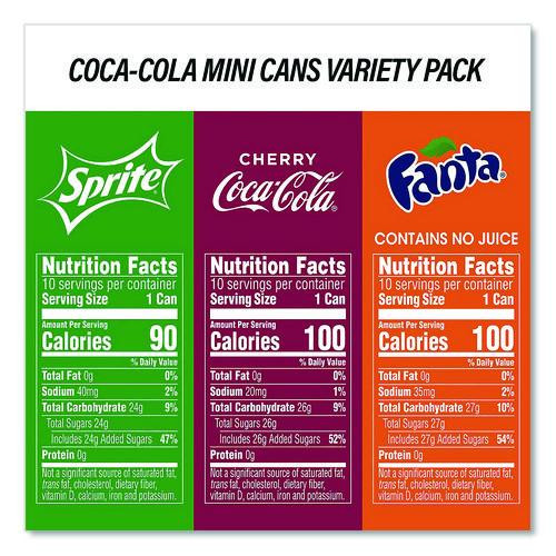 | Package Includes: | (10) 7.5 oz Can Each: Coca-Cola Cherry; Orange Fanta; Sprite; (45) 1.5 oz Pouch Original Cheez-It |