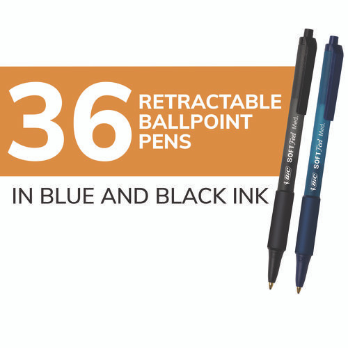 Soft Feel Ballpoint Pen Value Pack, Retractable, Medium 1 Mm, Black Ink, Black Barrel, 36/pack