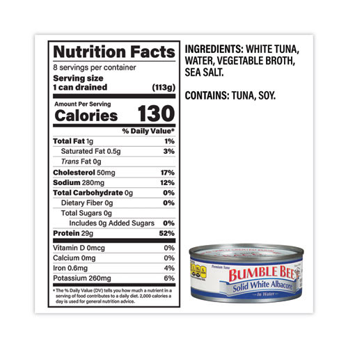 Solid White Albacore Tuna in Water, 5 oz Can, 8/Pack