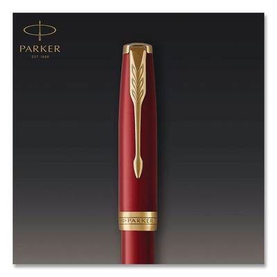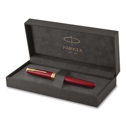 Sonnet Fountain Pen with Gift Box, Medium Fountain Nib, Red Ink, Red Lacquer/Gold Barrel