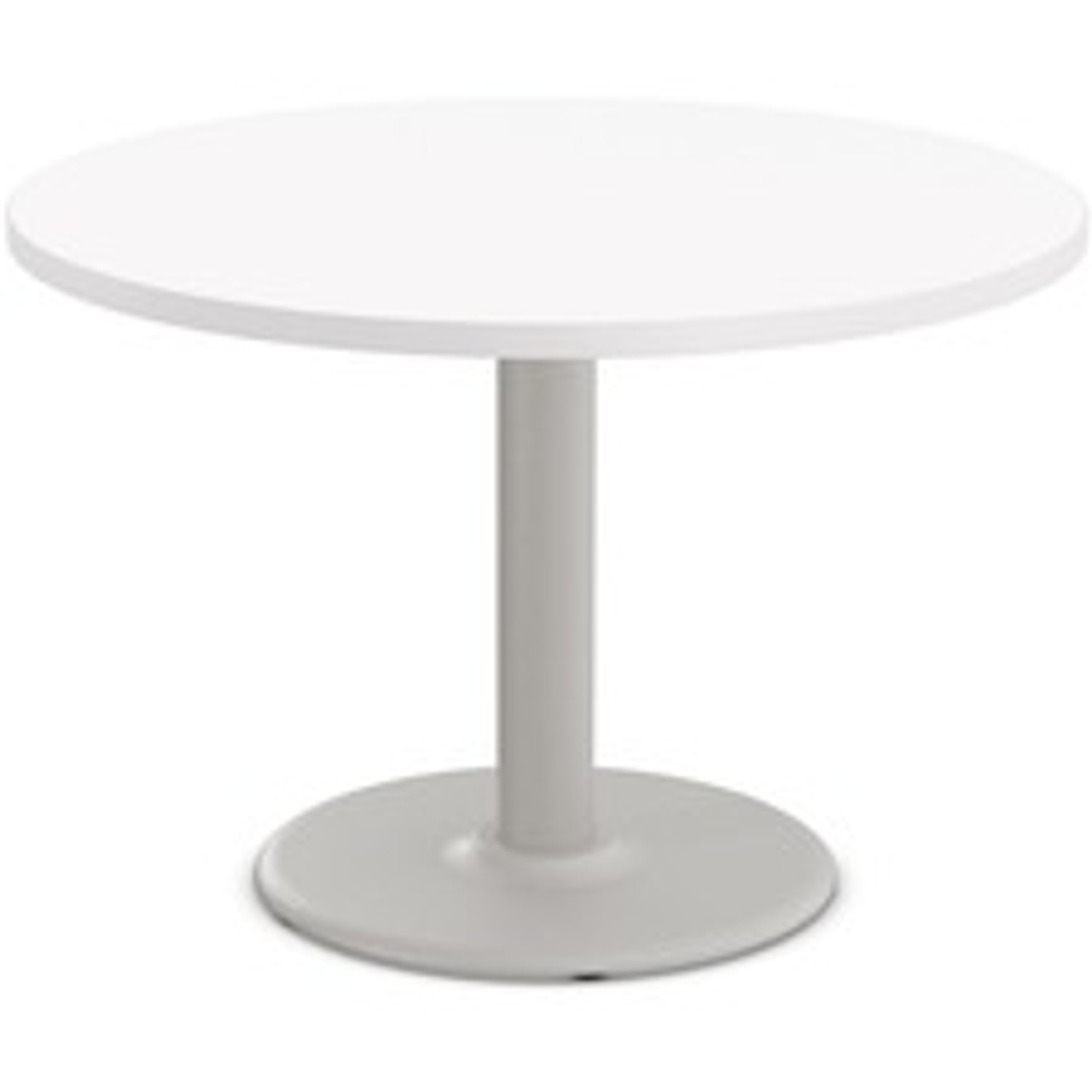 Special-T Cantina-2 Dining Table - White Round Top - Fog Gray, Powder Coated Base - 42" Table Top Diameter - 42" Height - Assembly Required - Thermofused Laminate (TFL) Top Material - 1 Each