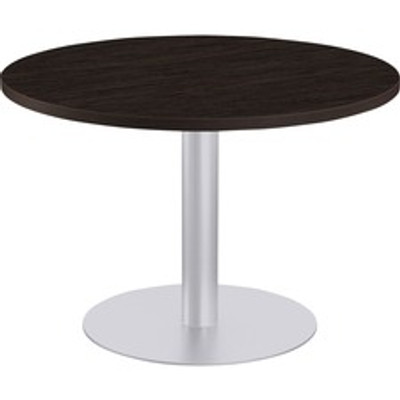 Choose Options Special-T Special-T Sienna Bar-height Cafe Table - Brown Round Top - Powder Coated, Metallic Silver Base - 1.25" Table Top Thickness x 36" Table Top Diameter - Assembly Required - High Pressure Laminate (HPL), Particleboard Top Material - 1 Each Sienna Hospitality Table features a high-end design to give you both strength and style. Column provides excellent strength and long-lasting use. Silver base prevents the table from wabbling on... Choose Options