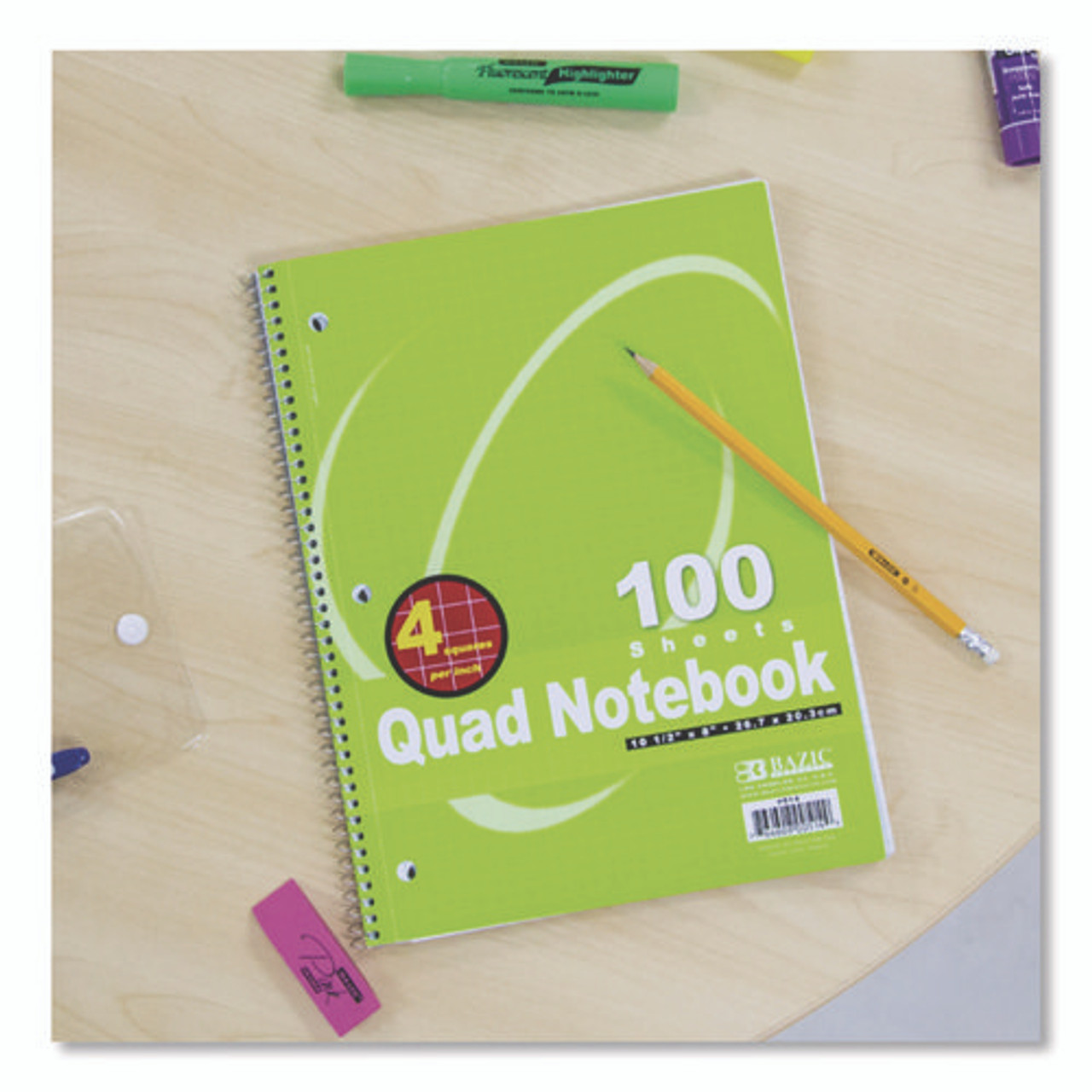 Spiral Notebook, Quadrille Rule (4 Sq/in), Randomly Assorted Cover Color, (100) 10.5 X 8 Sheets